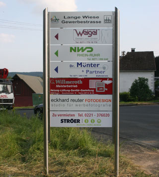 Hinweisschilder zeigen den Weg. Bestehende Kunden finden so leichter zu Ihnen.